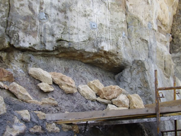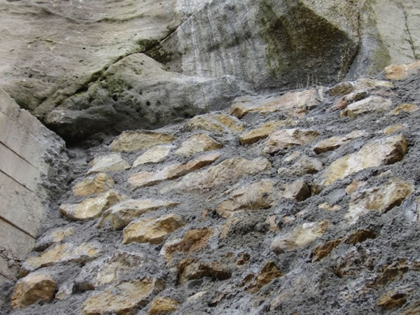 Descrição dos trabalhos:Consistiu no reforço da escarpa sob o Forte, mediante a execução de pregagens espaçadas.