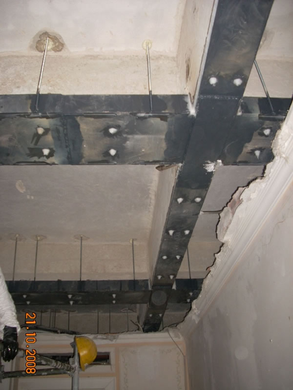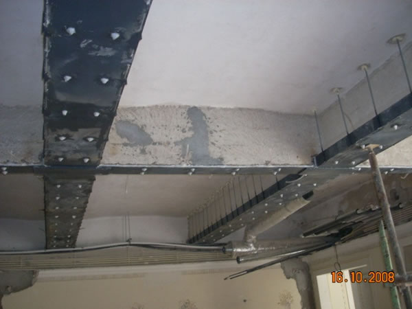 Reparação de fissuras existentes em vigas, através de injecção de resina epoxy;